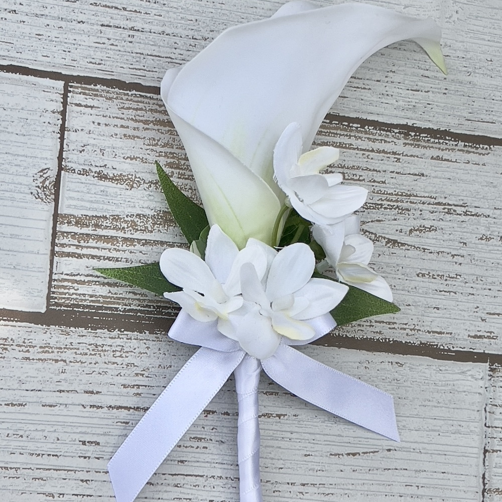 当店でリボンを付けたり、ブートニア制作等仕上げをします。(2時間)